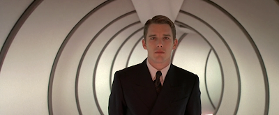 Vincent Freeman (Ethan Hawke) is just such a naturally born man, a degenerate (the movie's pun, not mine), and partially caused by his alienation from society he dreams of traveling into outer space. Unfortunately for him, an important job like being an astronaut is not likely going to be given to a genetically inferior person like him. So Vincent decides to pursue alternate routes to success: he participates in a kind of assisted, consensual identity theft. Jerome Morrow (Jude Law) is a genetically engineered man who recently lost the use of his legs and became wheelchair-bound, and decides to sell his identity to Vincent in exchange for a percentage of the profit he makes off using it. This practice is not only frowned upon (it's called a "borrowed ladder", one of the most benign slurs I've ever heard), but constitutes a form of fraud, so Vincent and Jerome have to be careful.